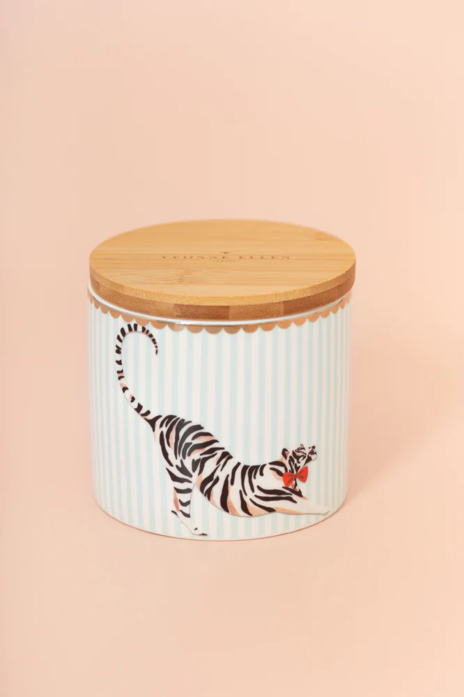 Aggiungi i nostri barattoli in porcellana pregiata alla tua cucina o al tuo bagno per una soluzione di conservazione elegante! Il coperchio in bambù si adatta perfettamente al contenitore, rendendo il barattolo Tiger ermetico e adatto per conservare alimenti secchi, caffè, tè o zucchero. Caratterizzato dall’iconica illustrazione della tigre di Yvonne Ellen, questo barattolo dovrebbe occupare un posto d’onore sul tuo piano di lavoro!