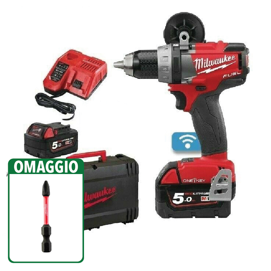 Milwaukee M18ONEPD2-502X FUEL TRAPANO AVVITATORE A PERCUSSIONE 2BATT. + OMAGGIO!