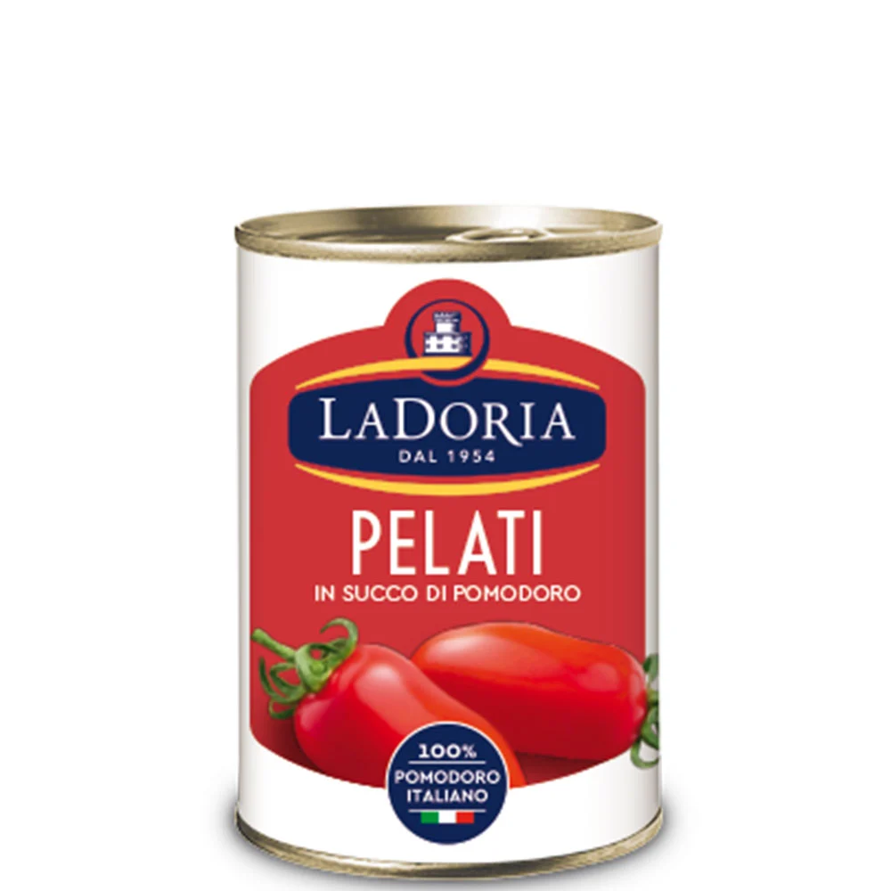 Pelati La Doria ml 425: pomodori pelati di altissima qualità, ideali per arricchire ogni piatto con il sapore autentico della tradizione mediterranea.