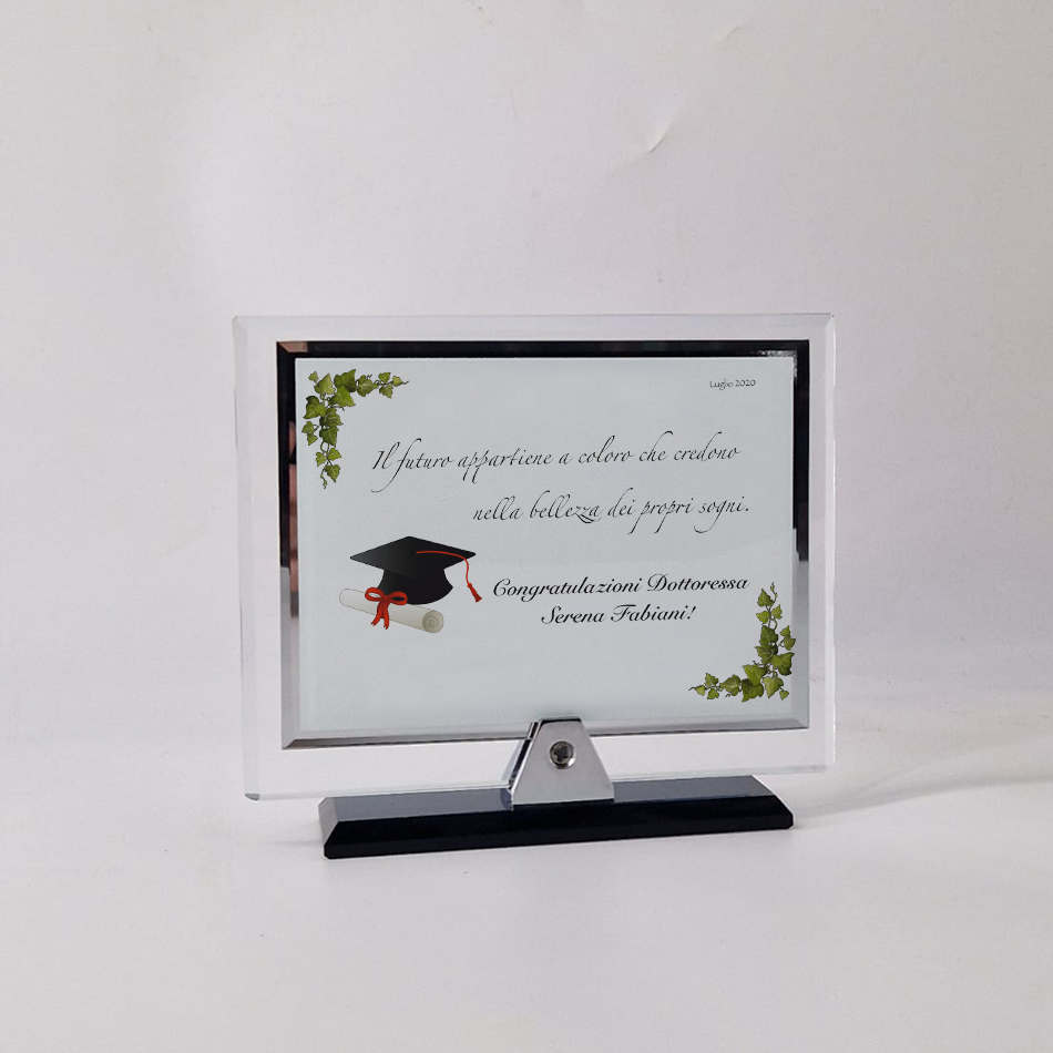 Targa in Vetro-Cristallo con Base Singola 18×13 cm, completa di incisione.