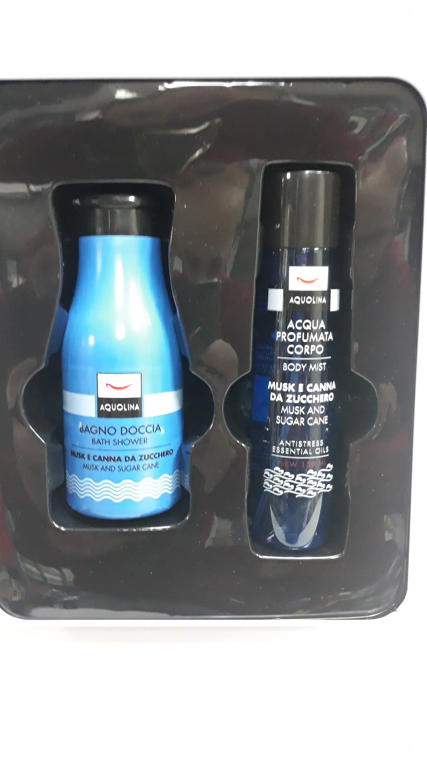 AQUOLINA MUSK E CANNA DA ZUCCHERO CONFEZIONE REGALO ACQUA PROFUMATA CORPO 150 ML+BAGNO DOCCIA 250 ML