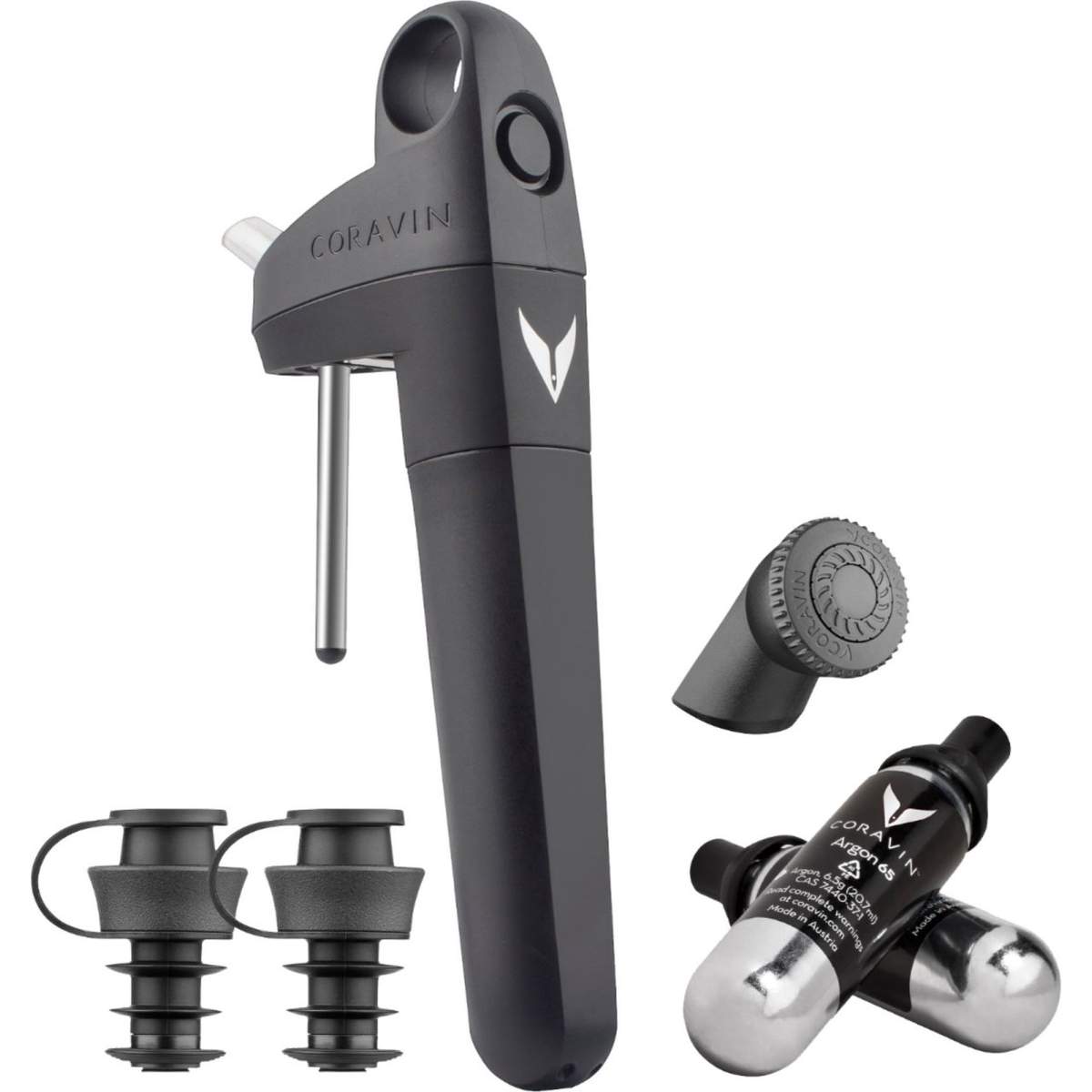 Idoneo all’uso quotidiano perché si adatta ad ogni tipo di tappo ed è dotato di un apribottiglie integrato, il suo design contemporaneo unisce il metallo cromato e la bachelite nera.