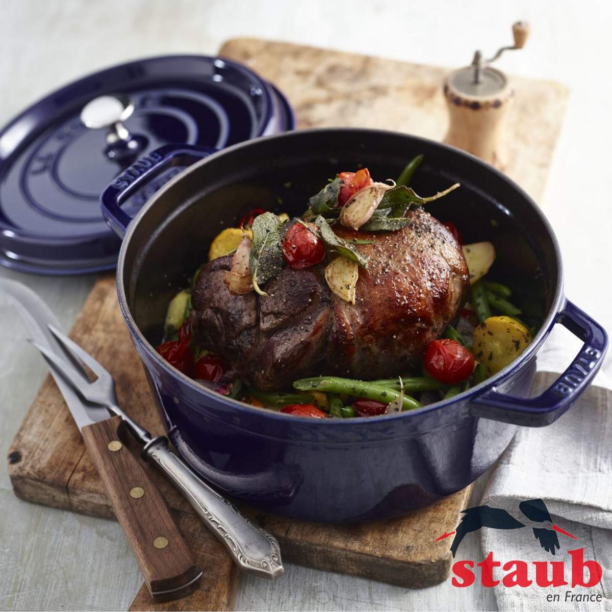 Esteticamente tradizionale ma con un tocco di modernità, questa cocotte realizzata in Francia, è perfetta per cuocere lentamente i cibi come carne, pesce o verdure e preparare ottimi stufati o brasati.