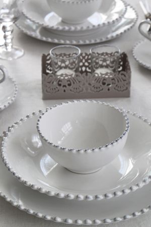 Le forme rotonde, splendidamente goffrate con un bordo di perline sono state reinventate per creare un nuovo concetto classico, portando in tavola un tocco di tradizionale eleganza europea che non passerà mai di moda.