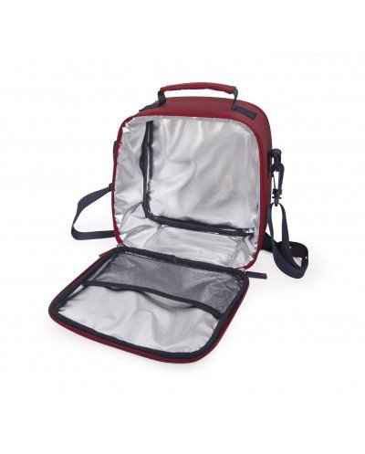 Borsa per alimenti con doppia cerniera, manico rinforzato e tracolla regolabile e removibile.