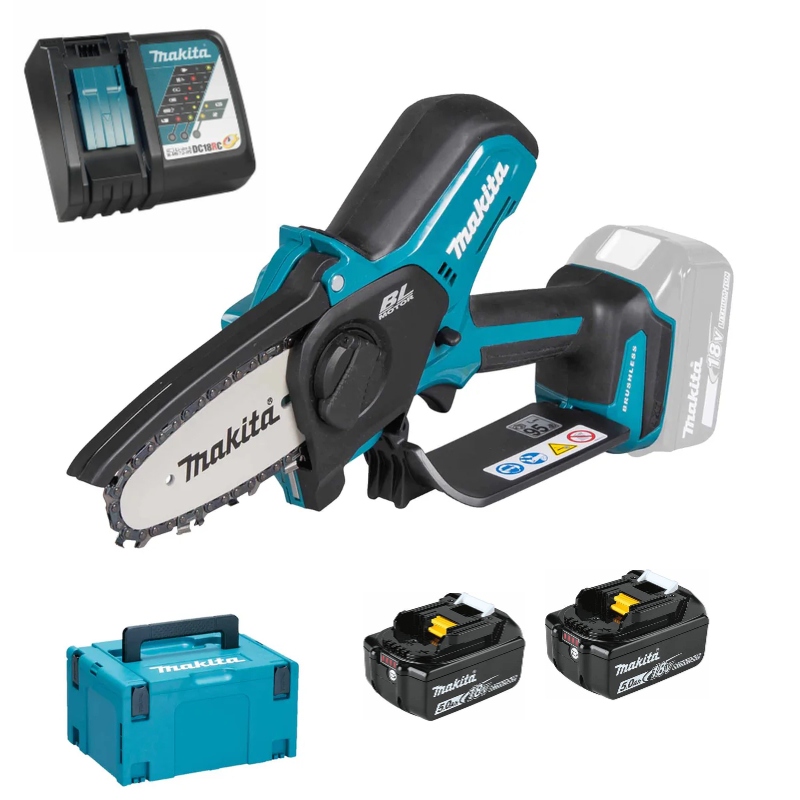 Potatore a catena Makita DUC101ZJ 18V, di elevate performance esecutive, leggero e maneggevole e sicuro in tutte le applicazioni di taglio per potature di rami. L’uso risulta facile e rapido, la sostituzione lama, il rabbocco dell’olio, e le operazioni di approntamento fanno di questa macchina un partner professionale affidabile
