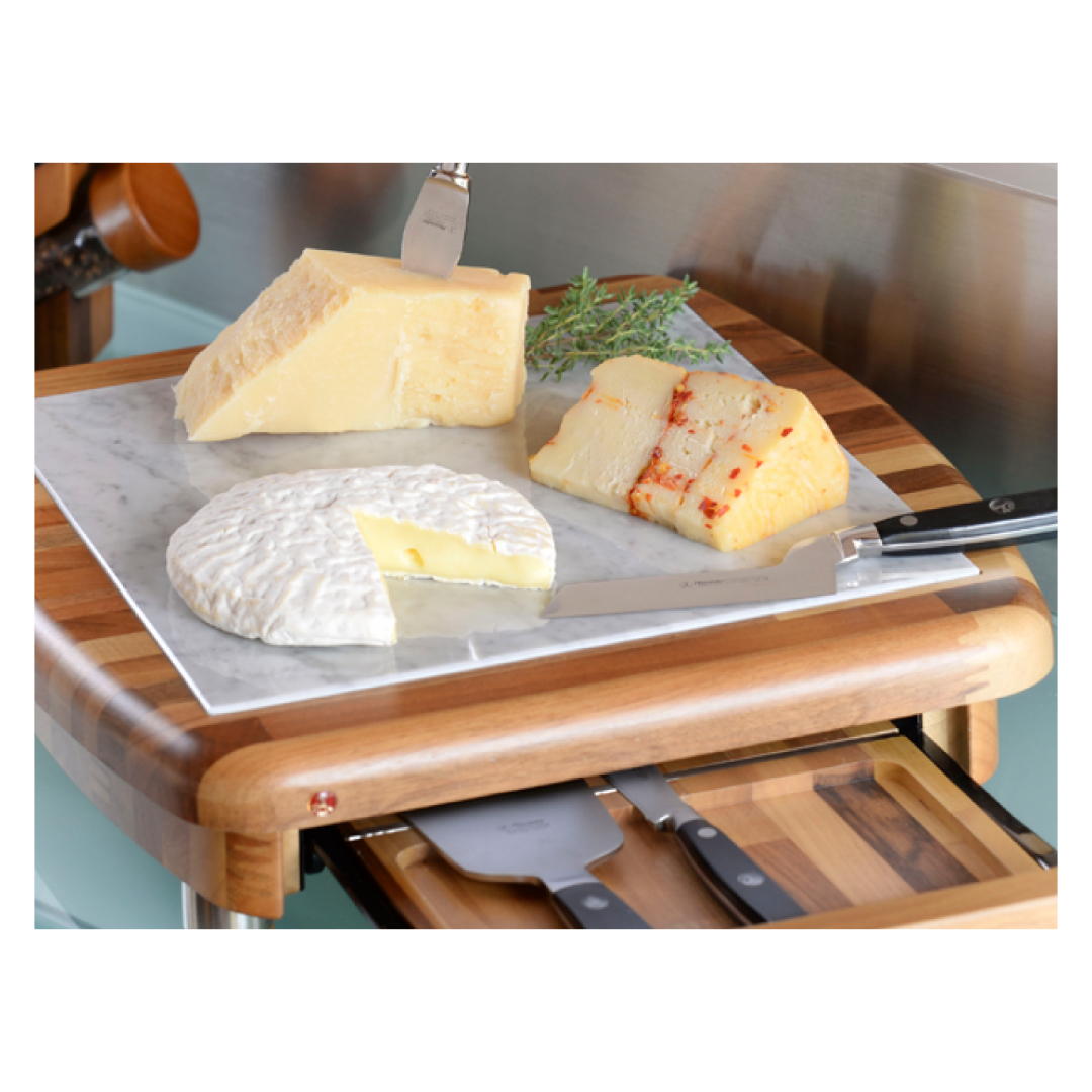 Tagliere Formaggi Marmo di Carrara con Coltelli Forgiati – Alexander